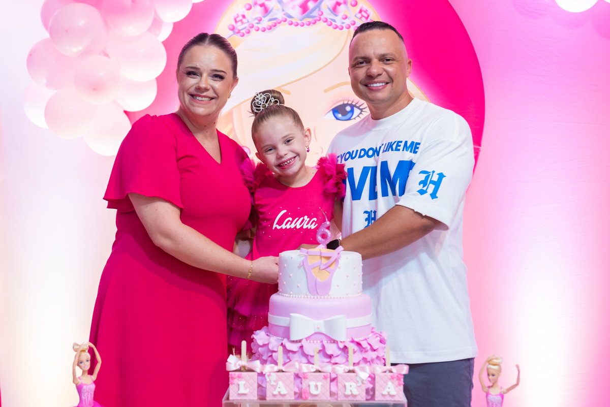 Com o tema Barbie, o aniversário foi marcado por muito rosa, brilho, alegria e uma decoração cheia de detalhes que transformaram o dia em um verdadeiro sonho infantil.